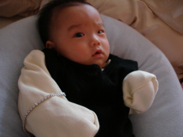 今天心血來潮把他拿出來透透氣... 看著看著就請小乖當當我的 baby model... 請看:
