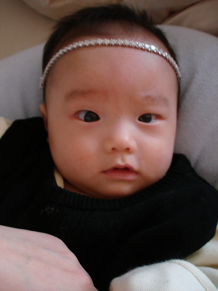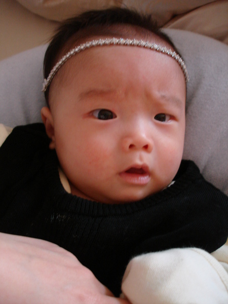 oh ~ 媽咪妳確定這是戴在頭上的嗎??? 皺眉了 (像爸爸的招牌皺眉.. )