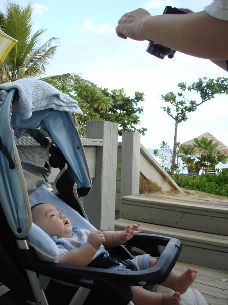 爺爺的房間直通沙灘... 真是棒阿~ 我當然就坐在我的推車裡...