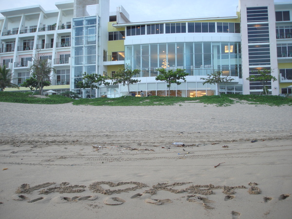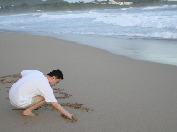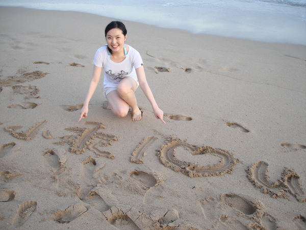 據說 (我媽咪說的啦) 我爸每次到沙灘都會被媽咪逼迫要"提些字"來浪漫一下... haha ~