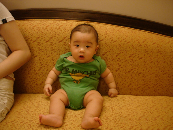 我第一次自己靠著坐喔 ~ 有點小小驚慌 ~