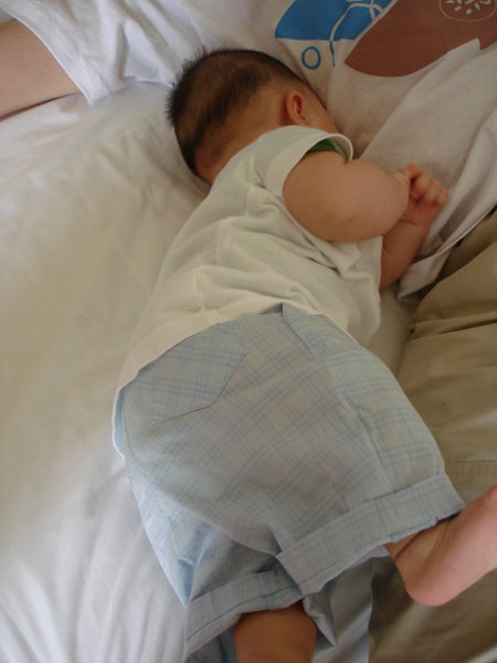 "小姐你的小孩趴著睡喔?"