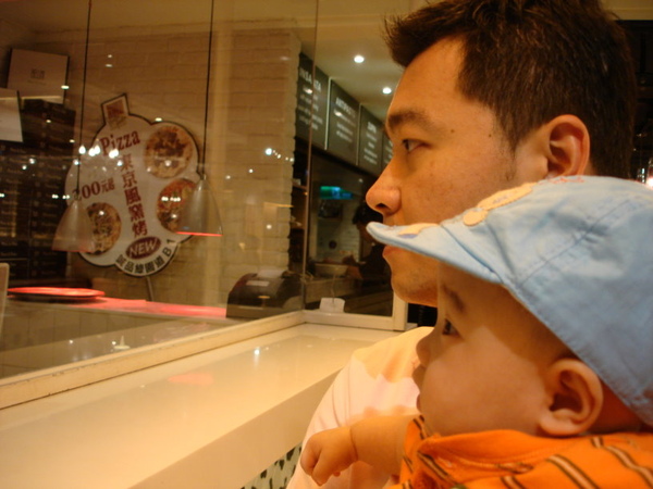 這是我們去Belini's從爸比的懷裡看Pizza師傅在做Pizza的樣子... 看得目不轉睛 兩眼瞪大大
