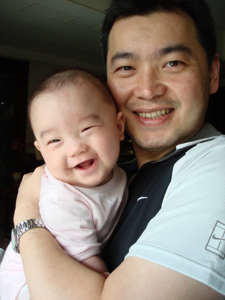 這天被媽咪穿了粉紅色的PUKU包屁衣.. 瞧我笑得多麼燦爛?!? 你覺得我跟爸比像嗎?