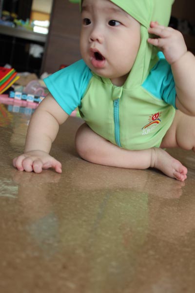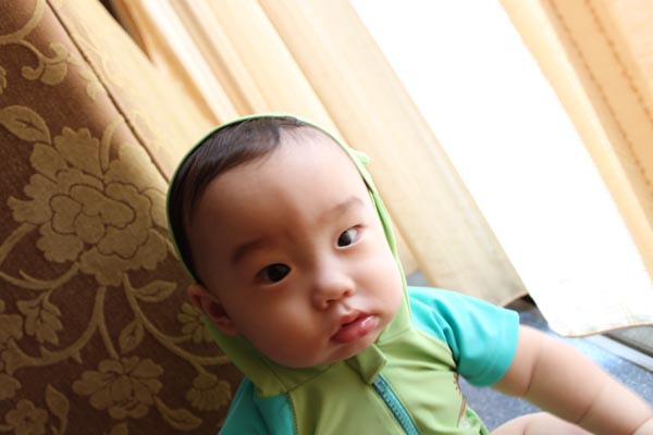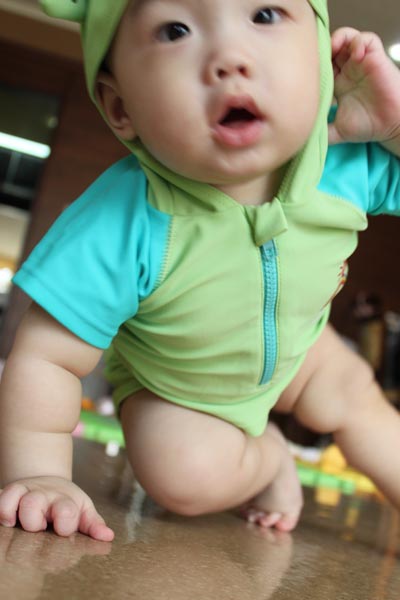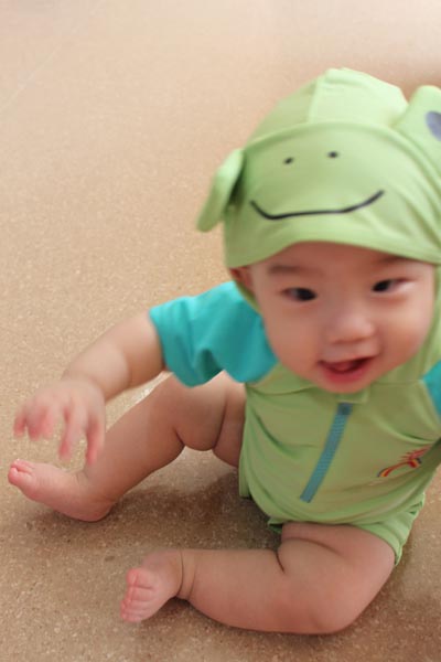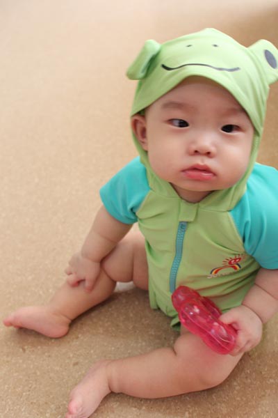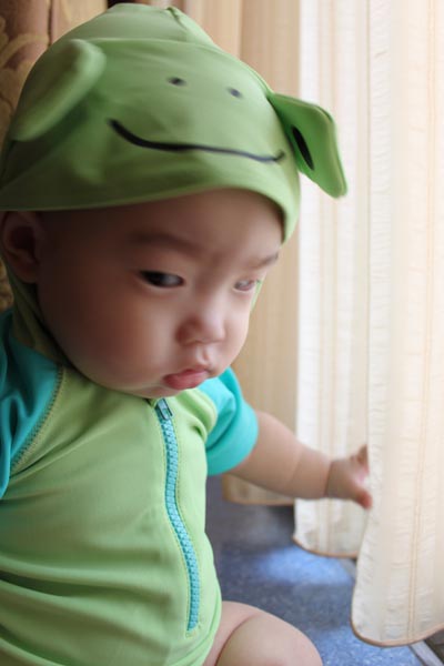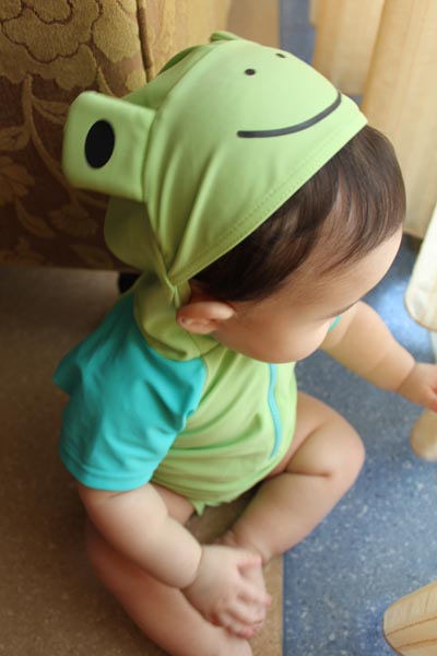 這套青蛙泳裝是小乖的二姑姑送的!!很帥吧!!!