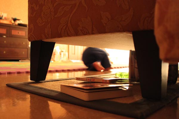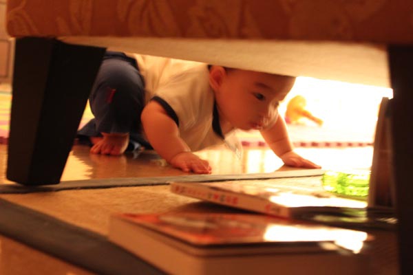 標準姿勢...努力想鑽下去...但頭實在太“扣“ 怎樣都塞不進去