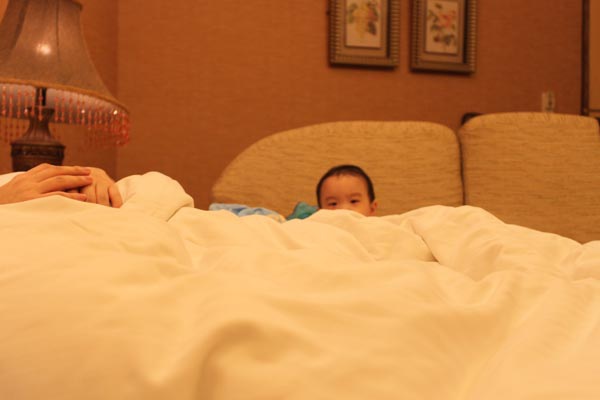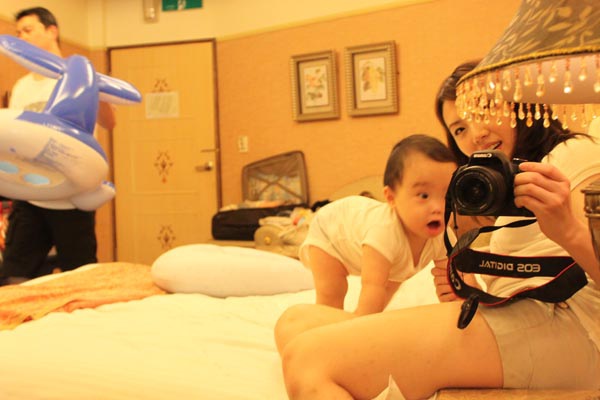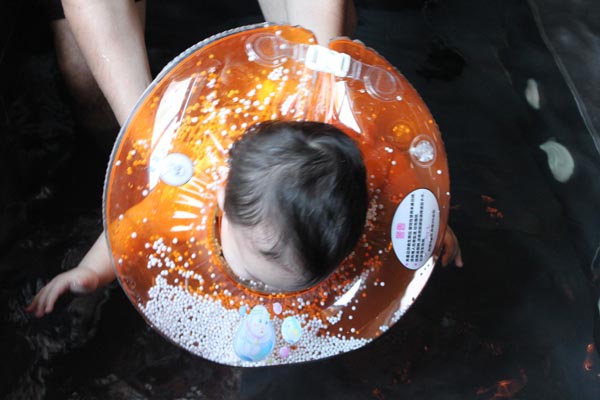 一到房間 丟下行李 趕緊換上泳裝先在房間內的浴缸試乘我的 "魚“ 船...