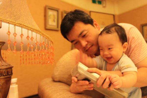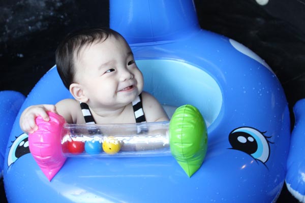 爸比一臉認真的抓我的魚船要去放水讓我舒動筋骨呢... !