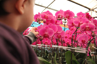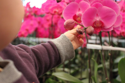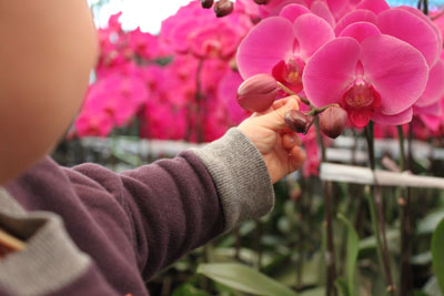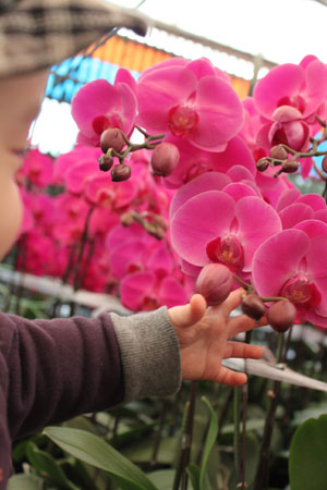 仗著這是爸比的蘭花少東家... 高小乖在裡面東摸西拔的...
