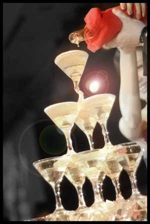 晶瑩剔透的香檳塔...同心協力的傾倒香檳...