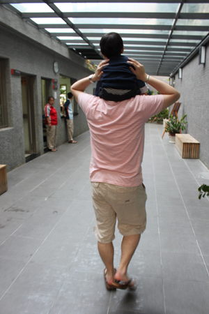 果真是你爸的兒子.. 一進門就拖鞋.. 還把鞋子拎著拿去擺好!