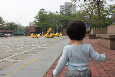 爸比在遠處用很殺得眼神說 : 那個沒有安全帶.. 不安全喔~