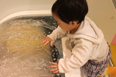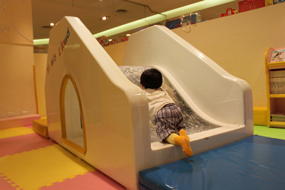 第一站.. 小乖看到著有流水的溜滑梯直噗往上走.. 當然一直滑下來..