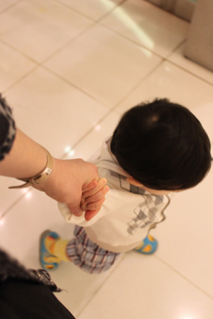 媽媽忘記什麼事了.. 小乖就哭了... 可能是跟他說要回家了..