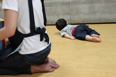 放完電可能也累攤了...竟然咚咚咚的跑到角落.. 趴下...