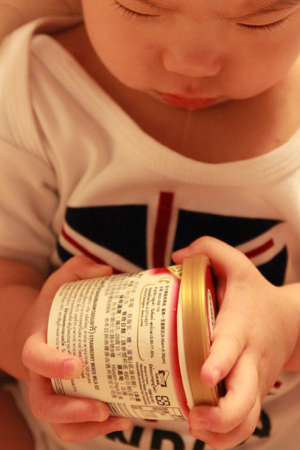 這小子跟我搶勺子.. 自己想 刮 一下 ~