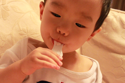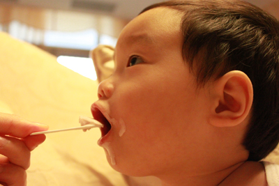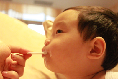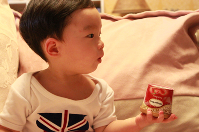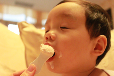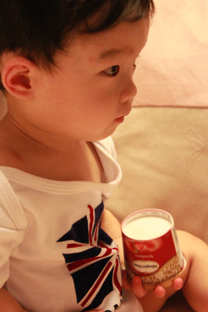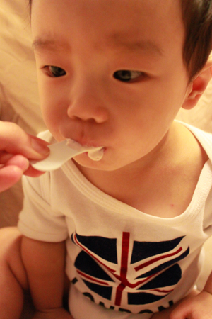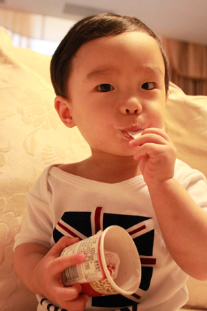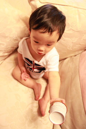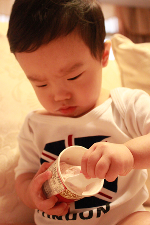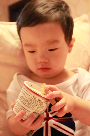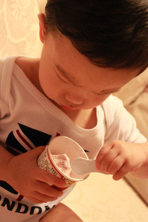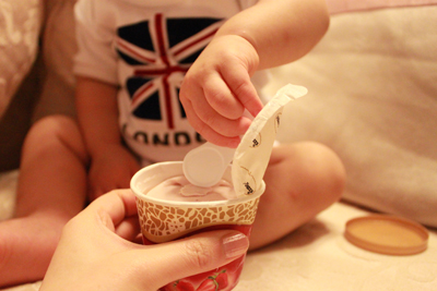 內有勺子耶.. 小乖自己拿起來刮刮刮 ~