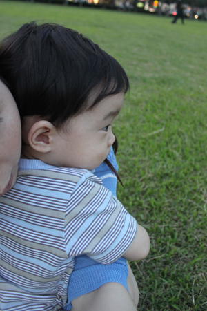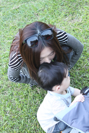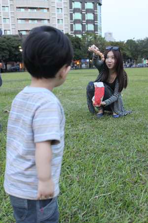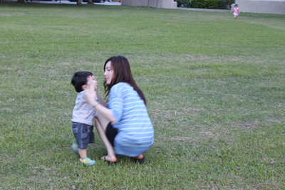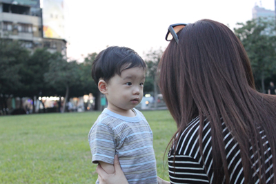 直撲我身上.. 媽媽我差點摔倒耶 ~