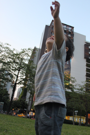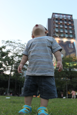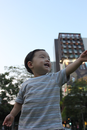 小乖一直指著天上 : 唧唧 ~ 不見了 .. 鳥兒飛阿飛 ~