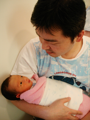 等待文件辦理時... 有個約 30歲斯文的爸爸坐在那...
