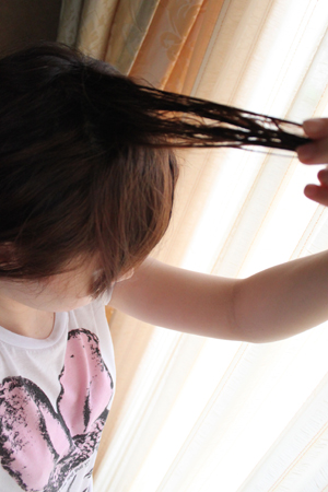 媽媽沒有想太多.. 起床梳洗完才發現.. 怎麼我的頭頂頭髮都結塊黏在一起阿?!?
