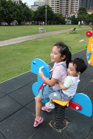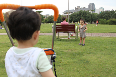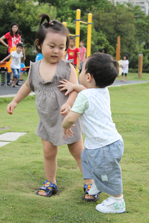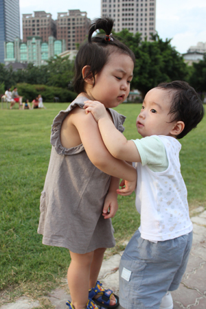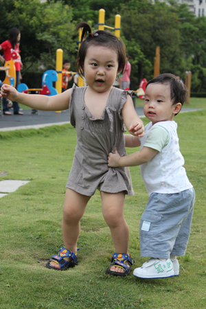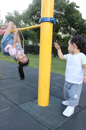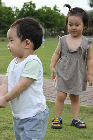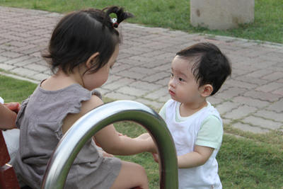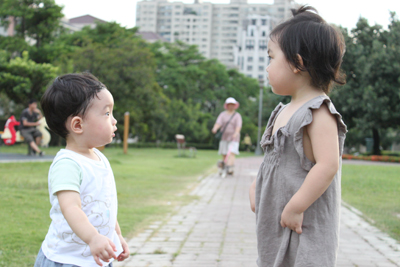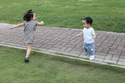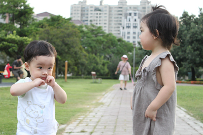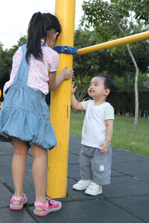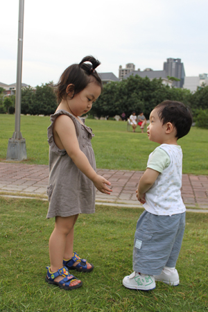 兩小無猜的繞圈圈跑跑.. 超樂得兩個小朋友!