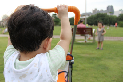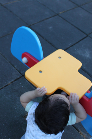 媽媽也不懂為什麼他要去親搖搖木馬的底盤..