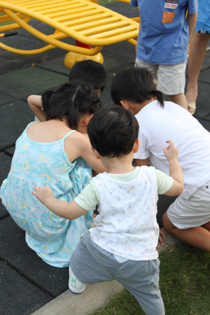 但也忘得很快.. 馬上跑去看旁邊在玩甲蟲的大小孩..