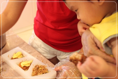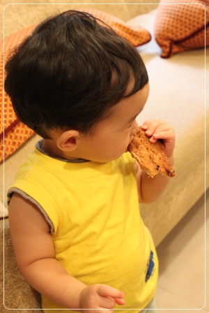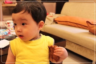 媽媽我還沒吃... 右半邊少掉那塊是姐姐吃掉的...