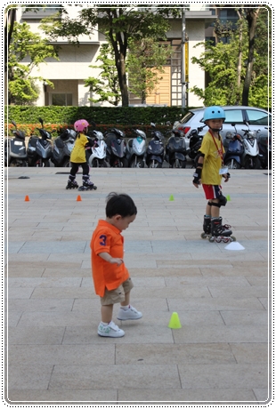 小子一看到直排輪團.. 狂奔過去...
