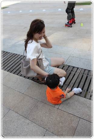 再不抱著.. 我兒子就要撞入溜冰群啦 ~~~