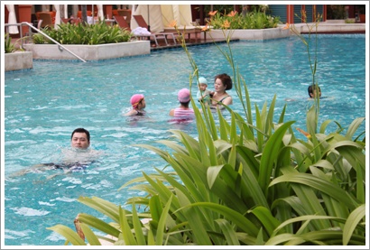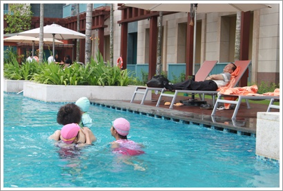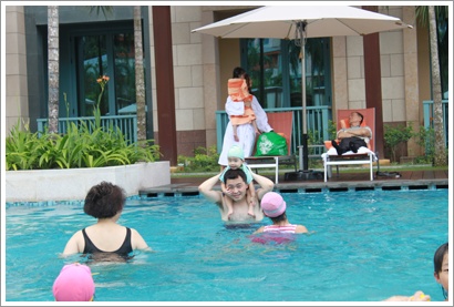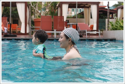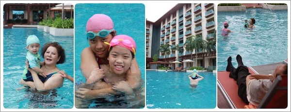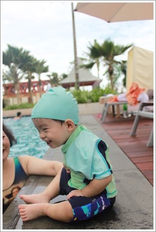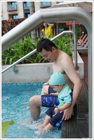 在小乖下水前.. 媽媽我還真的有模有樣幫小乖做暖身操喔!