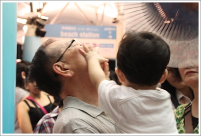 門外無奈的乖仔.. 門內吹冷氣尋寶的爸爸..