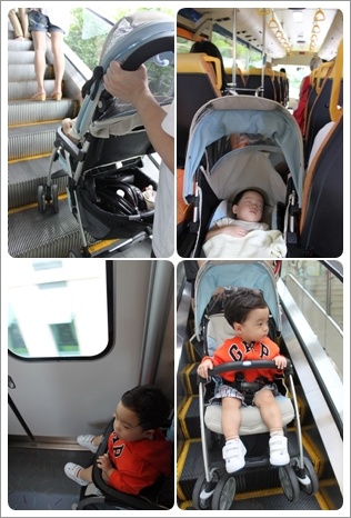 整台塞在巴士走道上..(我兒子睡得正熟.. )