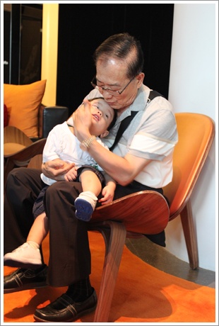 小乖在欺負阿公.. 小乖奶奶在旁用扇子幫小乖搧風..