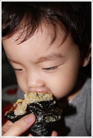 吃咕姑帶來的御飯團.. 整個快吃完呢!! ![]()