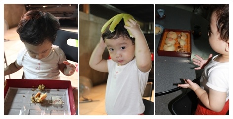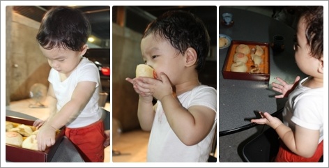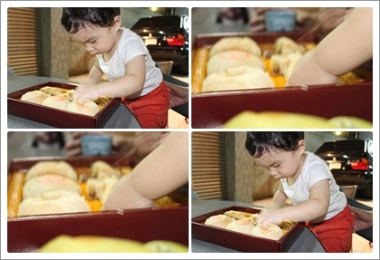 吃完了自己那份月餅還 "哇.. 兩手攤開說沒有了"
