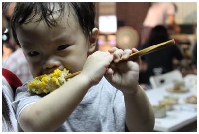 小乖吃玉米.. 像在吹長笛.. 不誇張.. 小子吃了兩個..!!