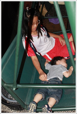 趴在大姐姐旁盪鞦韆.. 整個非常 enjoy ~