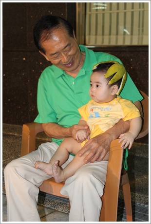 小乖 : 阿公你怎麼穿著我把比的鞋子呢?