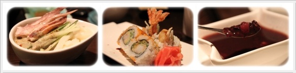 海鮮沙拉 - 炸蝦壽司 - 紅豆紫米甜湯