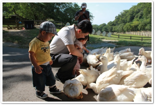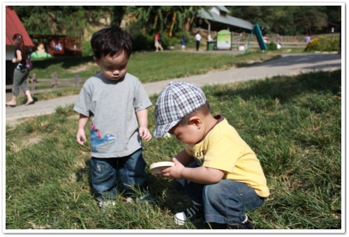 寶寶們竟然跑到草皮上去撿 "觀光客隨意丟棄的冰期林蓋子" ..