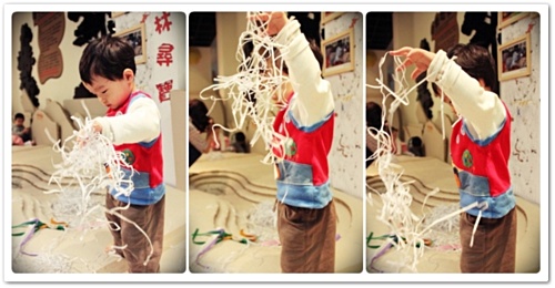 玩碎紙.. 大哥哥姐姐們把碎紙捏出個型狀..用交代綑起來定型..