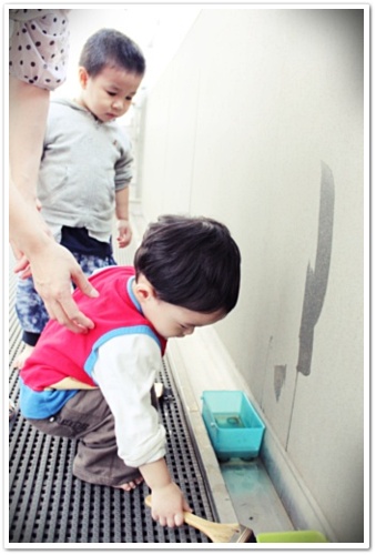 在我們對面的小姐姐.. 她奶奶帶她來..畫完我看他們一起把剛剛畫的..擦乾淨才走!!