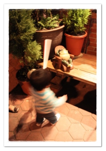 我UBABY的老師給我的回家功課就是 "爬花台..沿著花台走路.."