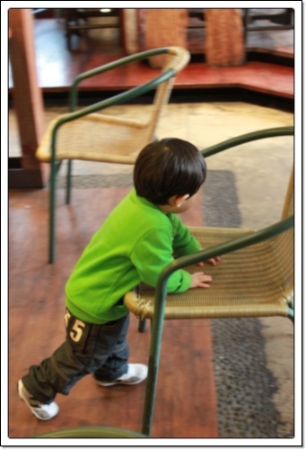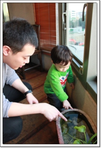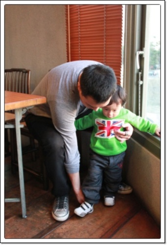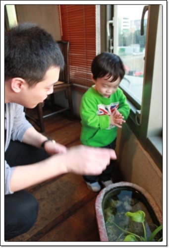 我們喝茶茶.. Uncle Mike 在幫小乖穿那飛出去的鞋子!