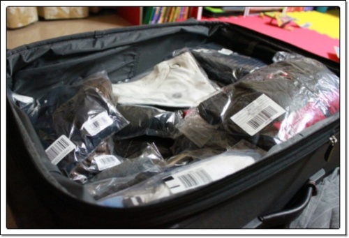 一打開行裡箱....... 真的 "滿滿一大箱" ...上面還擺了四根 Candy cane耶!!!!