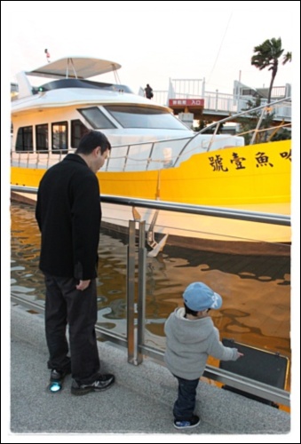 高小乖人生第一次品嚐花枝丸..就在台中那很迷你但是值得鼓勵的哈魚碼頭呦~