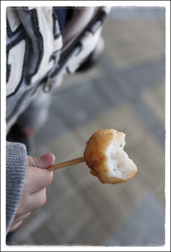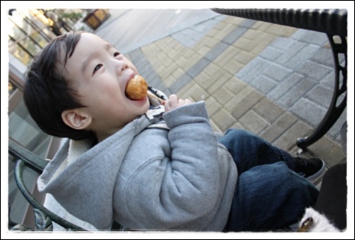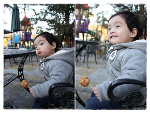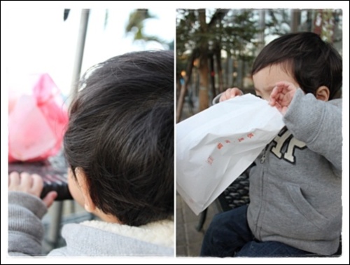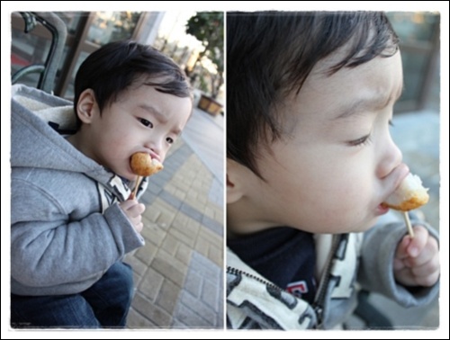 買了花枝丸.. 小子好興奮.. 說燙燙但小乖不理我..