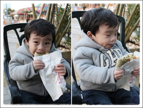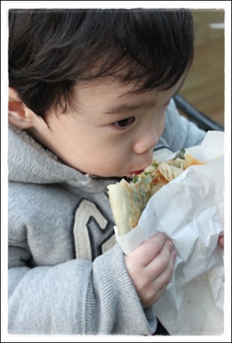 小乖爸又搜刮來的蔥油餅.. 好好吃喔.. 小乖也喜歡耶!